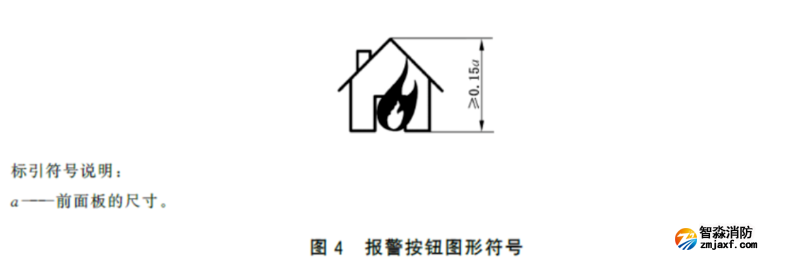 3.7.3.2.1宜在報警按鈕前面板的上部居中標注如所示的圖形符號或起同等作用的文字,符號和文字應(yīng)為白色。